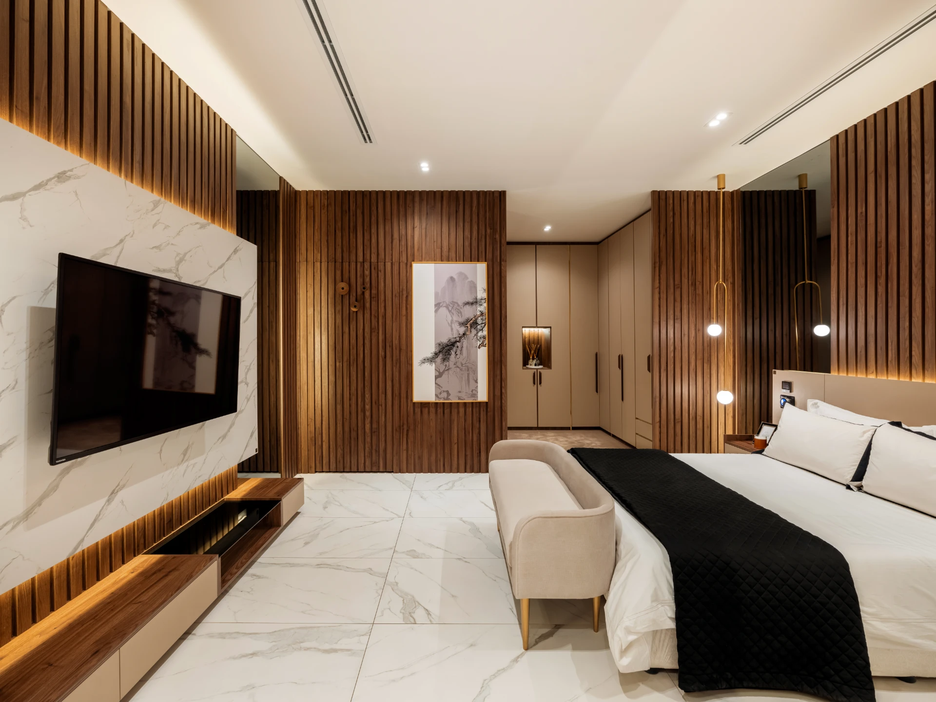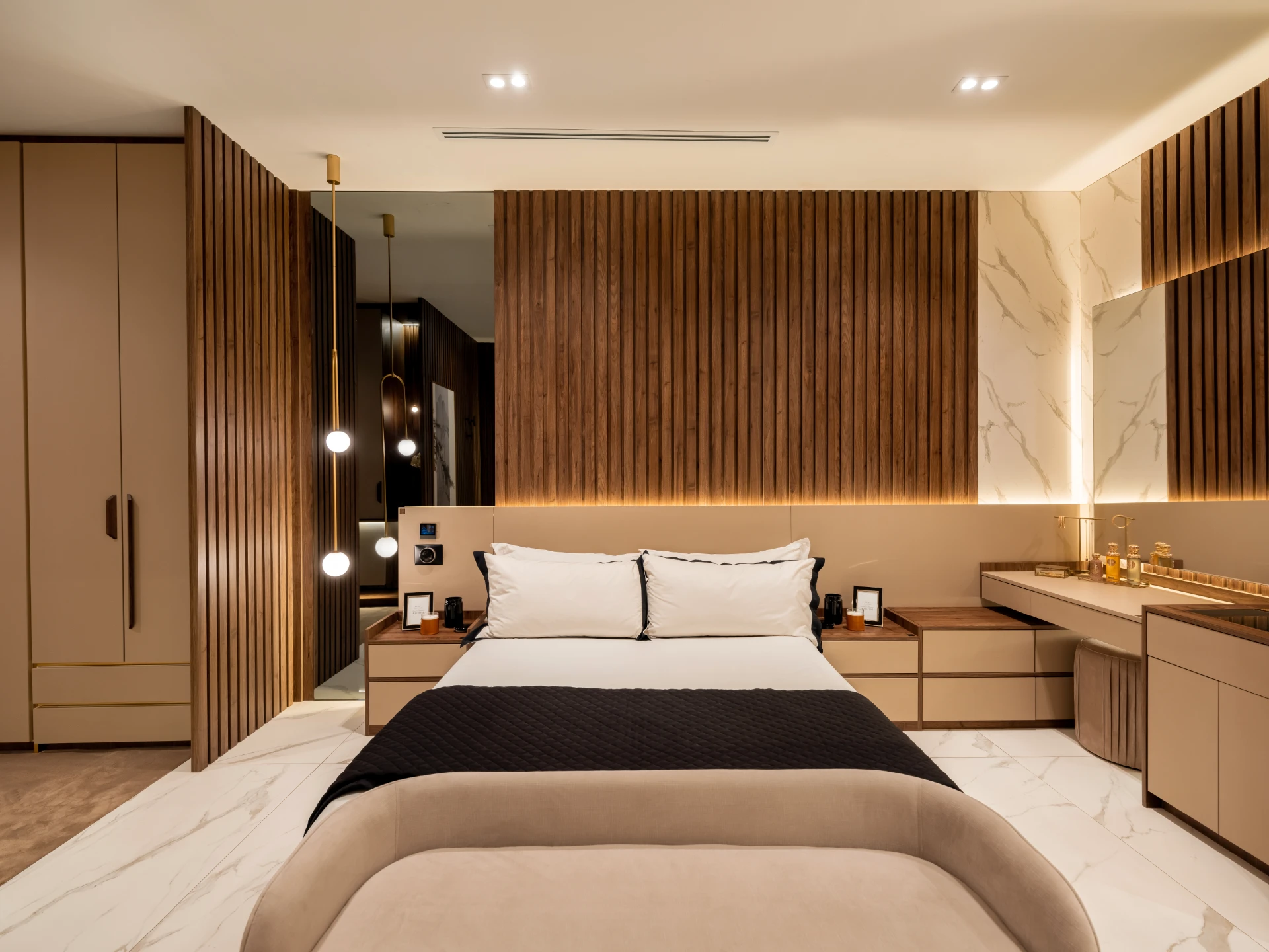 Our bedrooms are designed to be serene sanctuaries — spaces where comfort, elegance, and individuality coexist. With custom-made headboards for your bed, and customizable shapes, sizes, and materials, you will achieve your vision with precision and style. Every element is thoughtfully selected to reflect your personal taste, from luxurious finishes to bespoke furniture. We turn your dreams into refined realities, creating bedrooms that invite rest, reflect your identity, and elevate your everyday living.