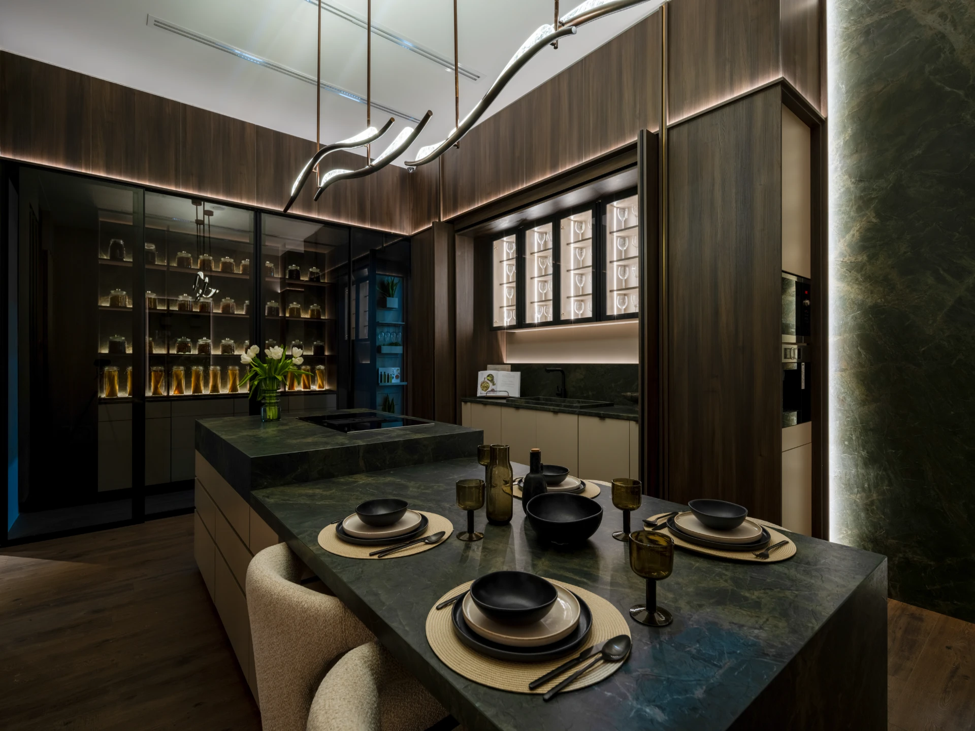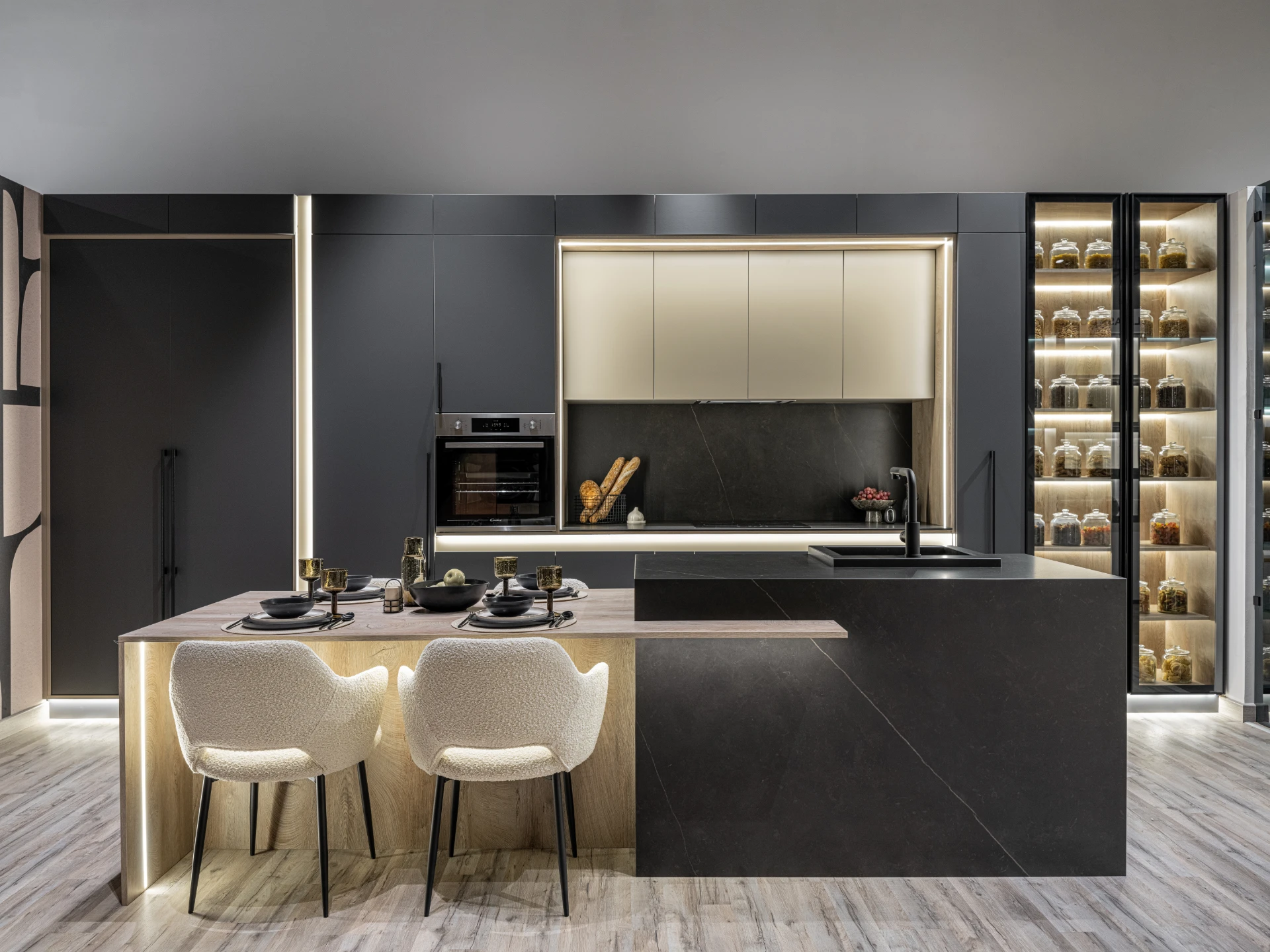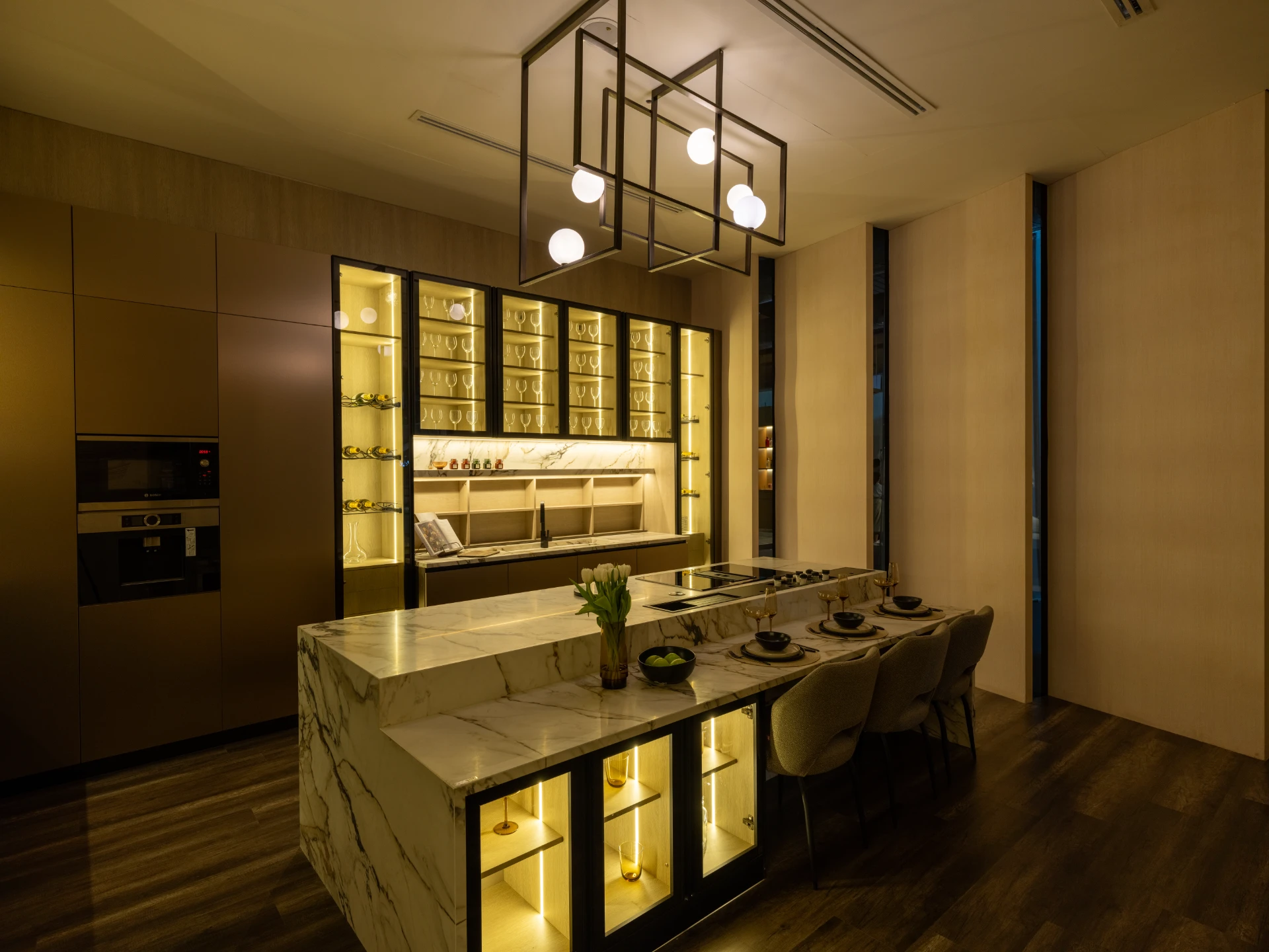 Our kitchens are created with an obsession, to aesthetically combine form and function, mixing and matching colors and materials to ensure that your style is well satisfied. When comes to the quality of finish and material we aspire for perfection. With exclusive, unique, & detail-oriented designs and finishes we under- stand your needs and desires weaving them into a real truth that you can behold and expe- rience